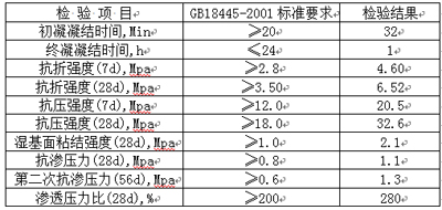 六、技術(shù)指標 執(zhí)行標準:GB18445-2001《水泥基滲透結(jié)晶防水材料》