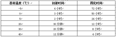 固化時(shí)間表